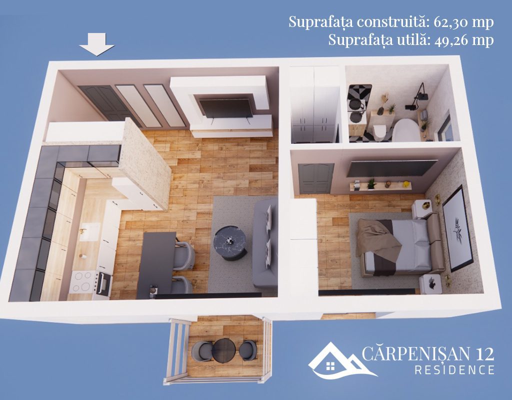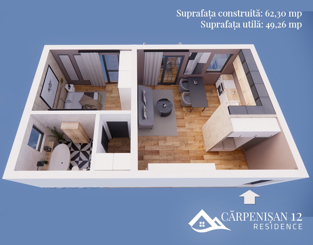 Pentru mansardă, un apartament openspace de 49,26 mp suprafață utilă și 52,27 mp desfășurați.