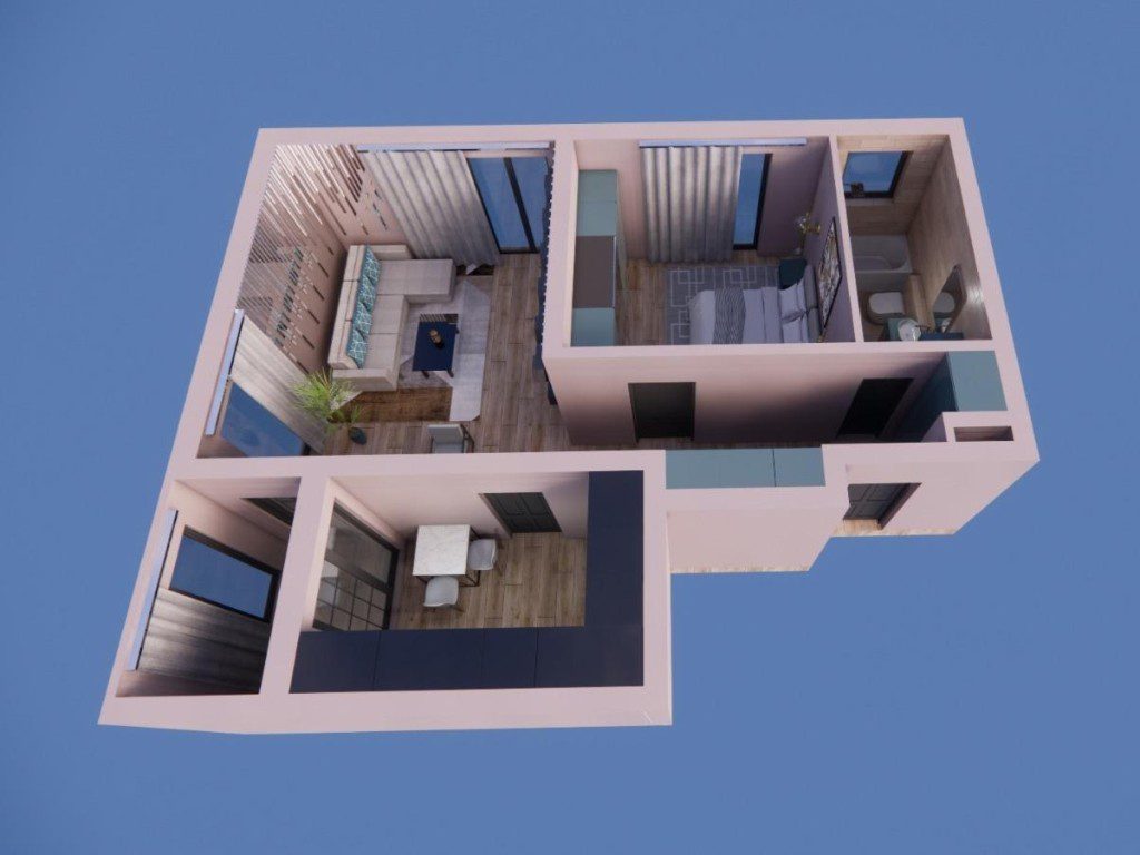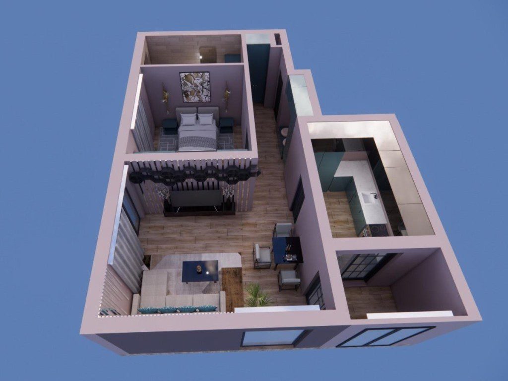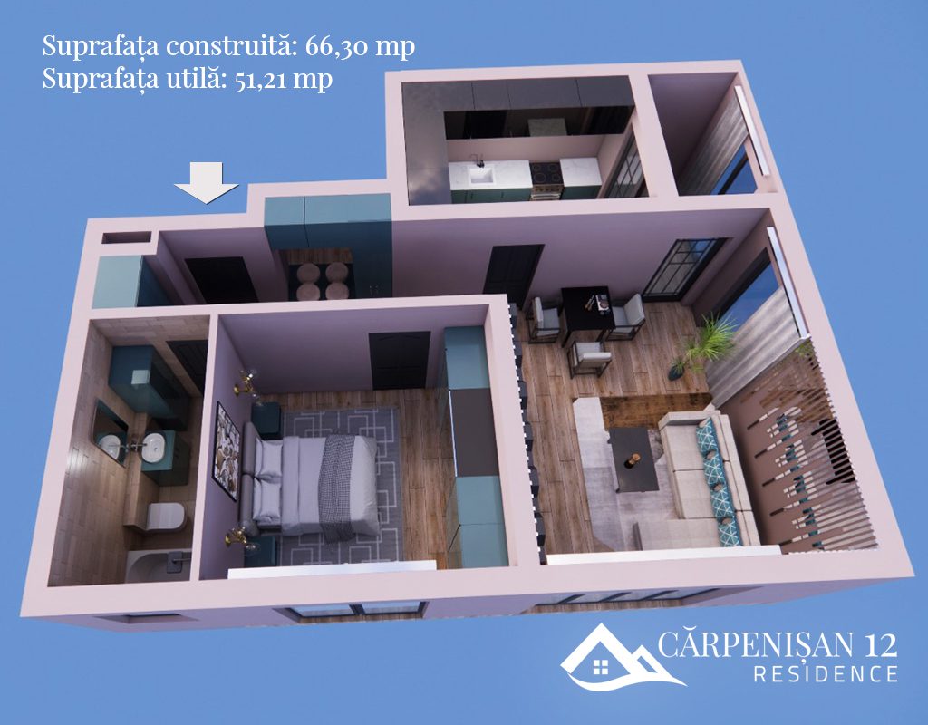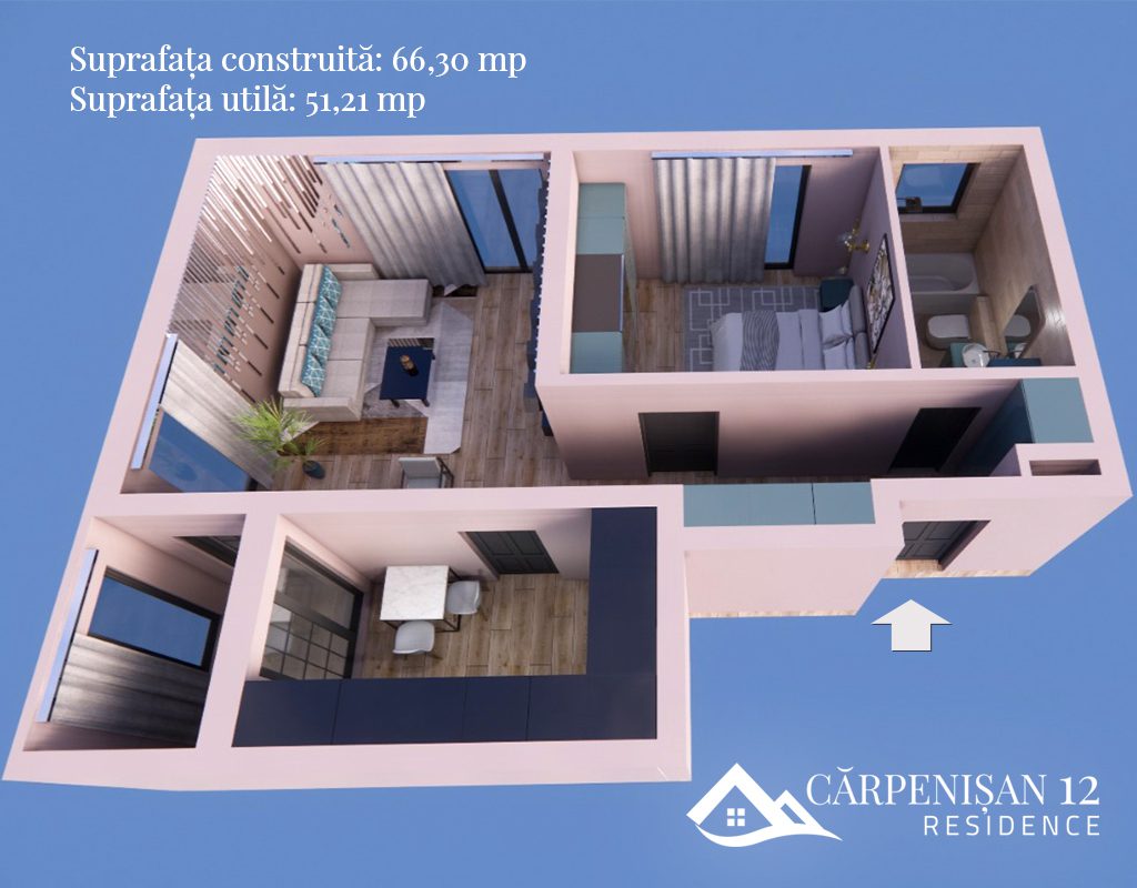Pentru spațiul generos și confortabil oferit, recomandăm un apartament open space la mansardă, cu 54,73 mp desfășurați și 66,30 mp suprafață construită.